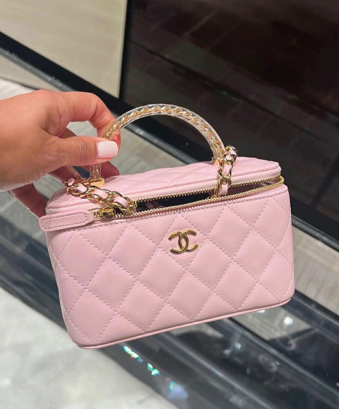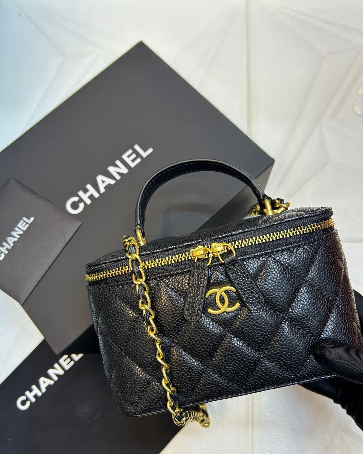 A must-have collectible for every modern wardrobe, the Chanel Vanity Top Handle Bag blends functionality with high fashion—making every moment feel iconic.